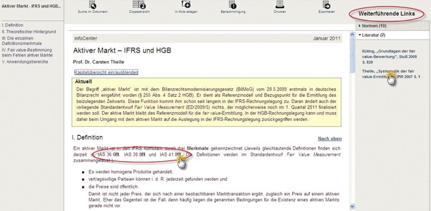 Der infoCenter-Beitrag selbst bietet deutlich mehr als nur eine einfache Begriffserklärung. Er beginnt i. d. R. mit einer kurzen und knappen Definition des Stichworts und verweist auf vertiefende Literatur zum Thema. Im Anschluss daran werden alle Aspekte des Themengebiets übersichtlich vermittelt.