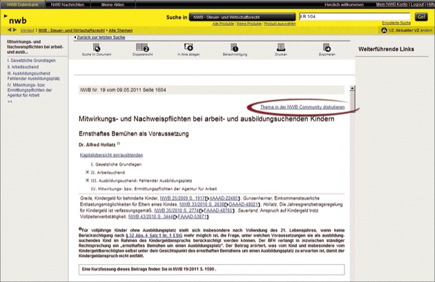 [i]Diskussion direkt aus der NWB DatenbankSie haben eine Frage z. B. zu einem Aufsatz, einer Eilnachricht oder einem Urteil, das Sie in der NWB Datenbank recherchiert haben? Starten Sie einfach direkt aus dem Datenbank-Dokument heraus eine Diskussion. Klicken Sie hierzu im Dokumentenkopf auf den Link „Thema in der NWB Community diskutieren”.