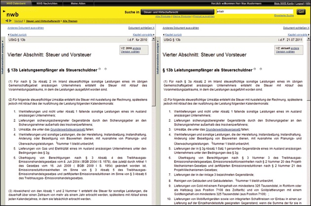 Die Doppel-Ansicht bietet sich immer dann an, wenn Sie in zwei Dokumenten gleichzeitig nachschlagen müssen, z. B. wenn Sie den jeweiligen Gesetzestext zu einem Beitrag aufrufen oder das entsprechende Urteil zu einer Urteilsbesprechung lesen möchten. Ein weiterer wichtiger Anwendungszweck der Doppel-Ansicht liegt in der Möglichkeit, S. 3580unterschiedliche Fassungen von Gesetzestexten einander gegenüberzustellen. Auf diese Weise erkennen Sie schnell, was sich geändert hat.
