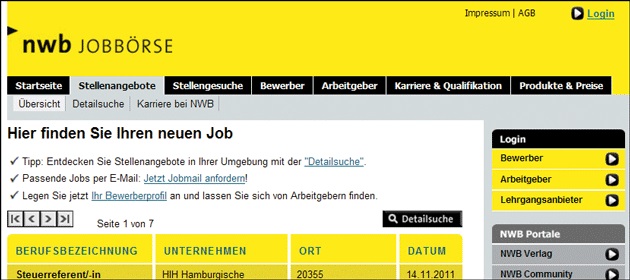 NWB Jobbörse – für Steuer- und Bilanzprofis