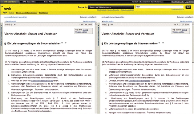 [i]Vergleichen Sie unterschiedliche Gesetzesfassungen miteinanderDie Doppel-Ansicht bietet sich an, wenn Sie z. B. den jeweiligen Gesetzestext zu einem Beitrag aufrufen oder das entsprechende Urteil zu einer Urteilsbesprechung lesen möchten. Ein weiterer wichtiger Anwendungszweck der Doppel-Ansicht liegt in der Möglichkeit, unterschiedliche Fassungen von Gesetzestexten einander gegenüberzustellen. Auf diese Weise erkennen Sie schnell, was sich geändert hat.