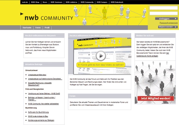 Kennen [i]www.nwb-community.deSie schon die neue NWB Community? Überzeugen Sie sich von mehr Übersichtlichkeit und neuen nützlichen Funktionen. Wir laden Sie herzlich ein, vorbeizuschauen und sind natürlich sehr gespannt auf Ihr Feedback.