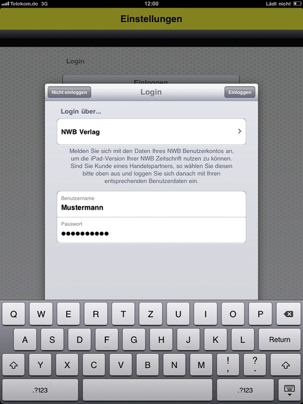• [i]Herunterladen und installierenBesuchen Sie den App Store und geben Sie den Suchbegriff „NWB Zeitschriften” ein.