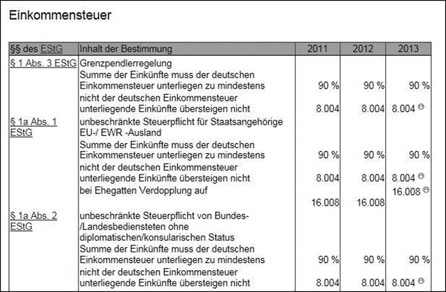 Steuerdatentabelle 2011/2012/2013