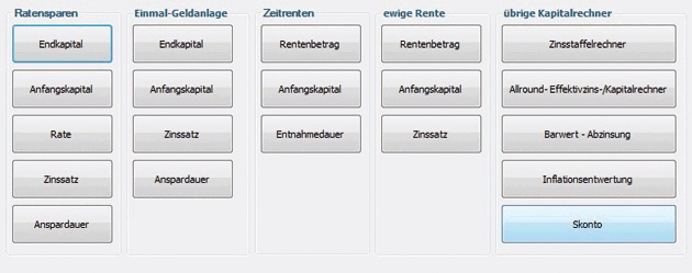 Der Allround-Effektivzins-/Kapitalrechner erlaubt auf einfache und flexible Art die Berechnung von Renditen unterschiedlichster Geldanlagen und Investitionen sowie die Effektivzinssatzberechnung von Krediten jeder Art. Mit wenig Aufwand sind Sie in der Lage, auch komplizierteste Sachverhalte korrekt zu beurteilen. Der Allroundrechner bietet sich immer dann an, wenn kein Spezialberechnungsmodul vorhanden ist.
