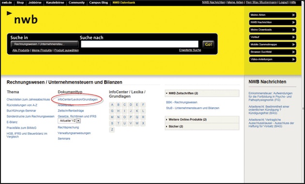 [i]www.nwb.deDie NWB Datenbank versorgt Sie stets mit allen Informationen, die Sie für Ihren Berufsalltag benötigen. Haben Sie bisher im infoCenter einen kompakten Überblick zu einem Thema erhalten, finden Sie nun bei den Grundlagen diverse Themen in aller Tiefe beleuchtet.