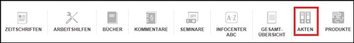 Mit der neuen Datenbankoberfläche ( www.nwb.de/go/neu) wurde der Aktenbereich grundlegend erneuert: Ihre individuellen Dokumentensammlungen sind mit der neuen Version prominenter als bislang zu finden. Sie gelangen in den Bereich, indem Sie auf der Startseite auf das Aktensymbol klicken oder oberhalb der Trefferliste auf den Button „Akten“.