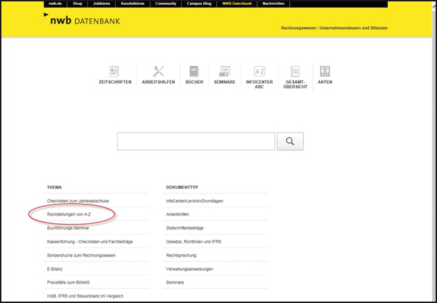 Über 150 Rückstellungsstichwörter in der NWB Datenbank