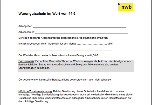 [i]NWB Datenbank: www.nwb.deDie NWB Datenbank versorgt Sie stets mit allen Informationen, die Sie für Ihren Berufsalltag benötigen. Nachfolgend stellen wir Ihnen heute Schreibvorlagen für Tank- und Warengutscheine vor NWB WAAAE-74432.