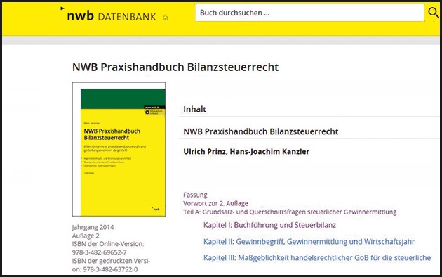Online-Versionen von Büchern bieten Ihnen zielgenaue Verlinkungen innerhalb des Textes die Möglichkeit, direkt zu den gesetzlichen Vorschriften zu wechseln, in aufgeführter Rechtsprechung zu recherchieren oder in einem zitierten Aufsatz einer NWB Zeitschrift weiterzulesen. Das erspart Ihnen nicht nur viel Zeit, sondern macht auch das lästige Suchen und Blättern überflüssig. Verweise, die als Fußnote im gedruckten Werk erscheinen, werden Ihnen online durch einen Klick angezeigt. Auch an dieser Stelle finden Sie passgenaue Verlinkungen zur zitierten Quelle. Als Abonnent steht Ihnen das Praxishandbuch Bilanzsteuerrecht von Prinz/Kanzler kostenlos als fester Bestandteil Ihres Moduls zur Verfügung. Im nächsten Abschnitt bringen wir Ihnen u. a. die Gliederung der 2. Auflage näher.